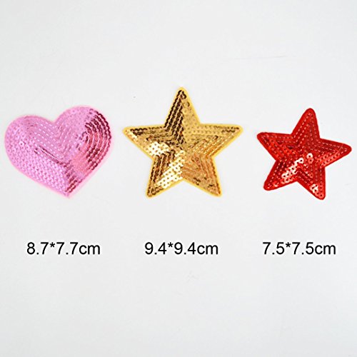 La Haute, toppe termoadesive con lustrini a forma di cuore e stella, patch ricamate per fai da te, 14 pezzi 14pcs