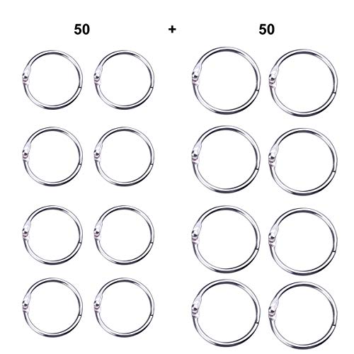 Hautoco, 100 anelli per raccoglitore, 50 anelli a foglia larga da 3,5 cm e 50 anelli per libri da 1,4 cm, color argento