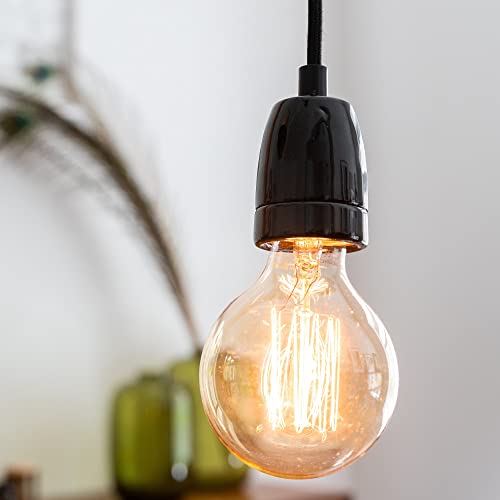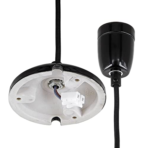 Lampadario a sospensione in porcellana, E27, 230 V, con cavo in tessuto, smaltato nero