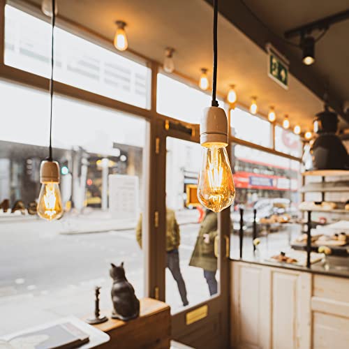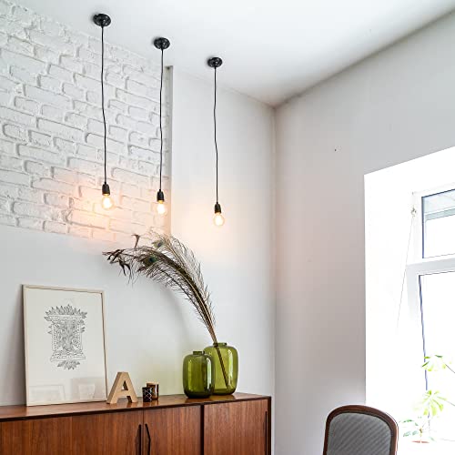 HAVA Lampada a sospensione in porcellana E27, 230 V, con cavo in tessuto, colore nero smaltato