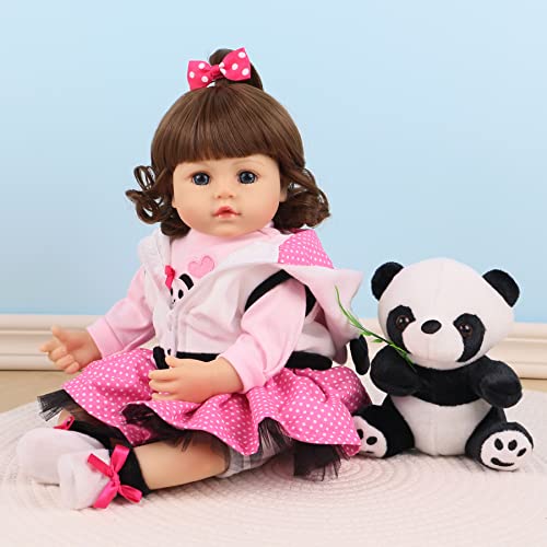 Haveahug Bambole per bambini rigenerati, con giocattoli panda di peluche, fatte di materiali morbidi in vinile e rivestiti (bianco)