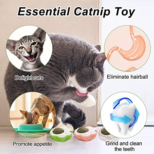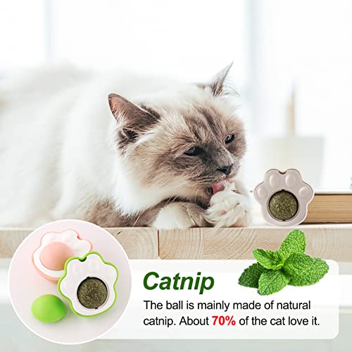 Havenfly Palline di Erba Gatta Catnip Ball Rotante Giochi Gatto Giocattolo Interattivo per Gatti Gattino Pulizia Denti (Gatto Zampa-3PCS)