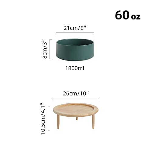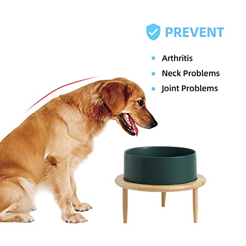 Havniva Ciotola per cani rialzata in ceramica, antiscivolo, altezza regolabile, ciotola per cani, protegge la colonna vertebrale cervicale (ciotola da 20.3 cm + supporto, verde)