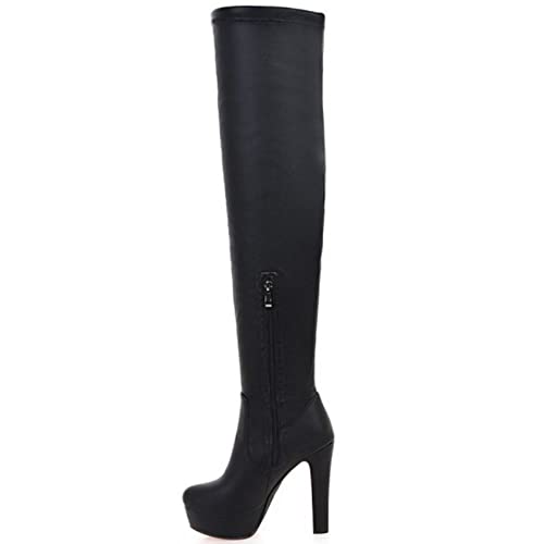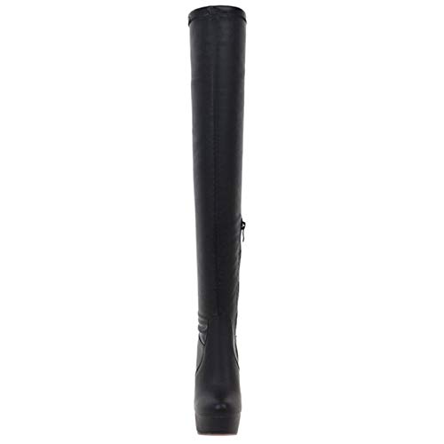HavueGatue Donna Moda Tacco Alto Sopra Il Ginocchio Stivali Zip Tacco Chunky Lungo Stivali Platform Black Numero 36 Asiatico