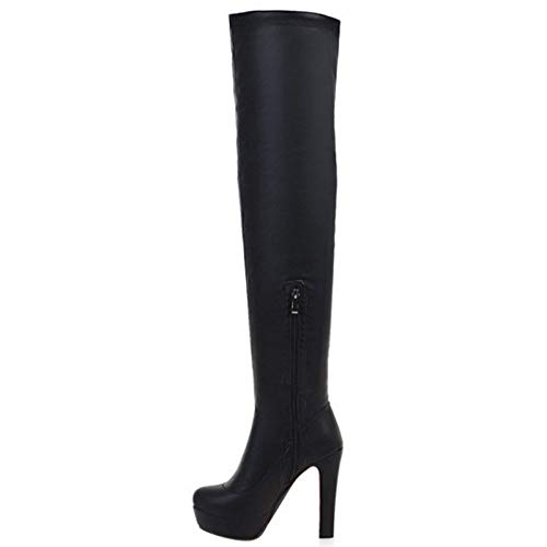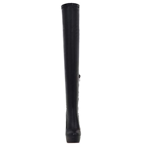 HavueGatue Donna Moda Tacco Alto Sopra Il Ginocchio Stivali Zip Tacco Chunky Lungo Stivali Platform Black Numero 44 Asiatico