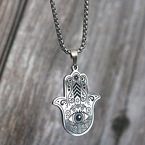 HAYOUWAY Hamsa Hand Evil Eye Collana Evil Eye Eye Collana Fatimas mano catena in acciaio inox con ciondolo amuleto gioielli regalo per donne uomini argento, Acciaio inossidabile