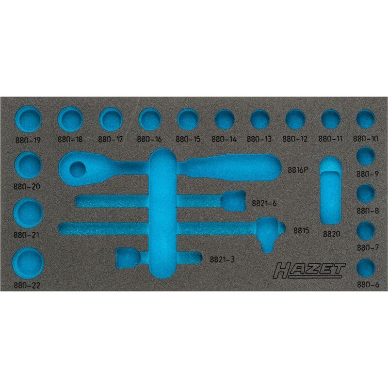 Alloggiamento in schiuma espansa morbida bicomponente vuoto per 880-2 Made in Germany Dimensioni / Lunghezza: 342 mm x 172 mm Dimensione sistema di ordinamento: 1/3 (342 x 172 mm) / per HAZET 165-L