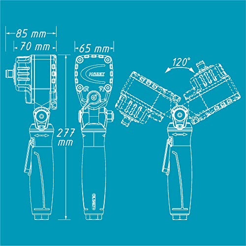 Hazet Avvitatore a percussione ad aria compressa ad angolo (1/2", scarico quadrato max. 550 Nm, estrattore regolabile a 120°, lunghezza: 277 mm, lunghezza testa: 70 mm, colore: nero/blu