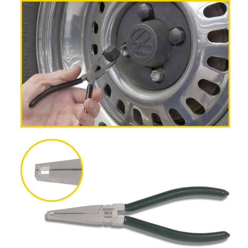 Applicazione: rimozione priva di danni dei tappi di protezione dei bulloni della ruota sui cerchi di alluminio • Suggerimenti per la mascella delle piante formati per i tappi protettivi • su E.G. AUDI. VW e OPEL • Superficie: cromo lucido elevato. Maniglia di immersione rivestita • Made in Germany • Lunghezza totale: 160 mm • Peso netto: 0,13 kg