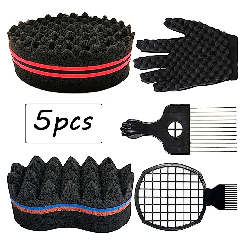 La confezione contiene: 5 pezzi di strumenti per arricciare i capelli, tra cui 1 pezzo di spugna capelli afro grande, 1 pezzo di spazzola di curl sponge piccola, 1 pezzo di pettine a rete, 1 pezzo di pettine per capelli africani e 1 pezzo di guanto di spugna.