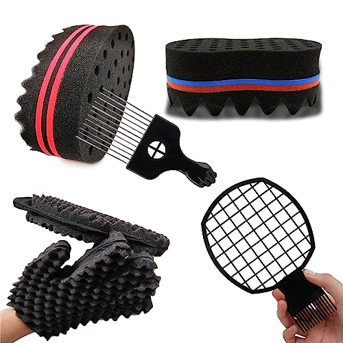 Hazrcvr Spugna Capelli Afro 2 Pezzi Spazzola per Capelli in Spugna Spugna per Capelli Afro Twist Spugna Curl Pettine Ricci per Capelli Twist Sponge con Pettine Afro di Metallo e Spugna Guanti