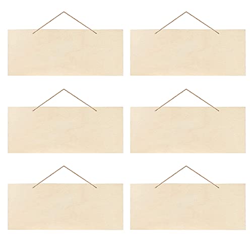 Hazrcvr Targhe Legno 6 Pezzi Segno di Legno con Corda Segno in Bianco Incompiuto Targa Rettangolare in Legno Appeso Cartelli da Appendere in Legno per Pirografia Scrittura Decorazioni