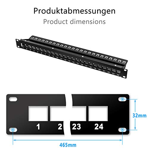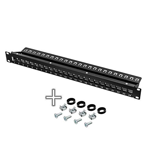 HB-Digital 24-Port Patchpanel modulare per Moduli Keystone, schermato Nero Pannello di distribuzione 19 Pollici Rackmount Servermount 1U Cat 5 Cat 6 Cat 7 LAN Professionale Cavo di Messa a Terra