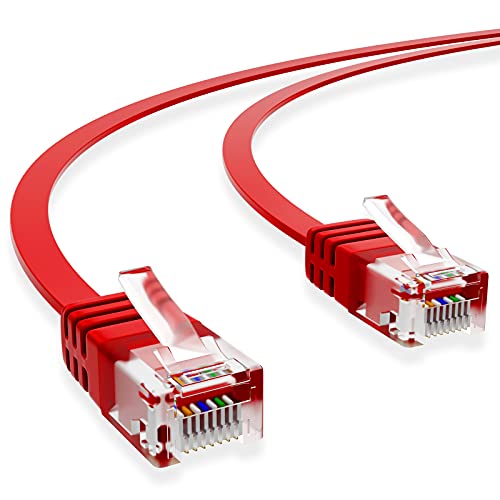 Hb-digital 7,5m cavo di rete LAN Flat Patch Cable con spina RJ45 in rame professionale sottile e flessibile per Gigabit Ethernet compatibile con PC Router Switch Modem TV Console di gioco,rosso