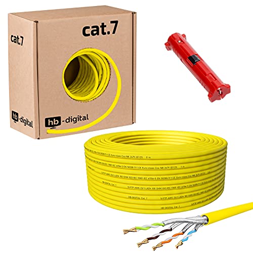 HB-DIGITAL 50m cavo di rete LAN cavo di installazione Cabel cat. 7 rame professionale + spogliarellista (grande) S/FTP PIMF LSZH giallo senza alogeni RoHS-Compliant cat. 7 AWG 23/1