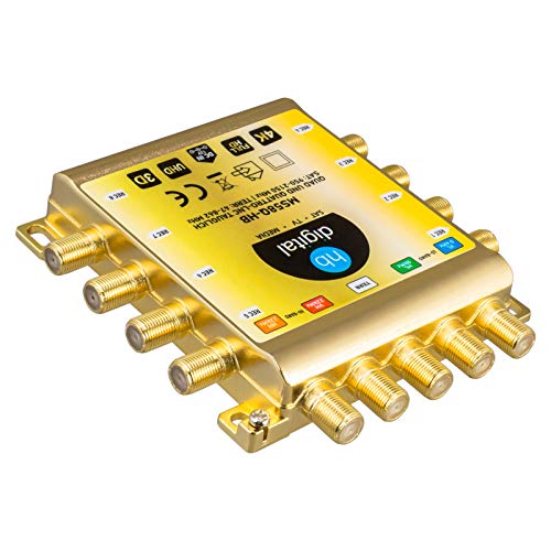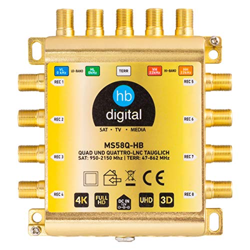 HB-DIGITAL DVB-S/S2 Multiswitch 5/8 | Distributore Multiswitch per 1 SAT, 8 ricevitori satellitari | Quad & Quattro LNB | con alimentatore esterno | MS58Q-HB | HDTV FullHD 1080p 4K UHD
