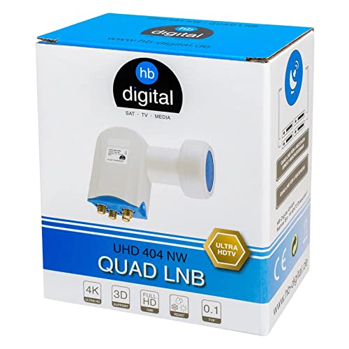 HB-Digital Quad LNB LNC 4 partecipanti Direct Full HD TV 3D 4K Bianco + Contatti placcati in oro + Protezione dagli agenti atmosferici Estendibile in un set con 8 connettori F placcati in oro