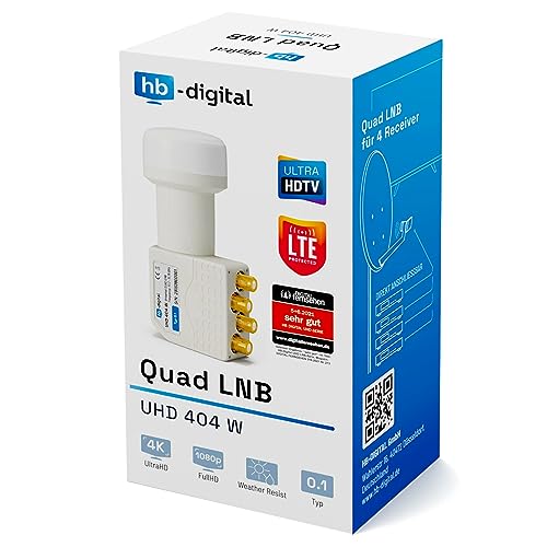 ⏯️ 4K | LNB per 4 partecipanti | Ricevitore DIGITALE | FULL HDTV | 3D TV | Digital Quad LNB per 4 partecipanti direttamente collegabile al ricevitore / Quattro Switch Multiswitch è integrato, in modo da poter azionare fino a 4 ricevitori contemporaneamente e in modo indipendente