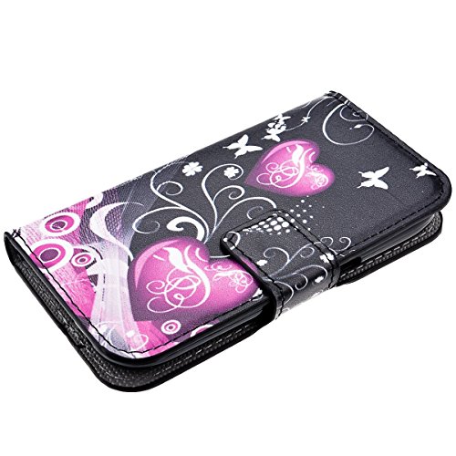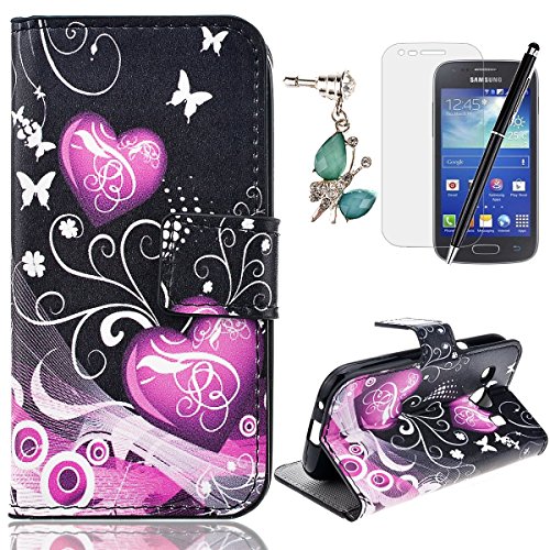 HB-Int 4 in 1 Borsa in Pelle Custodia per Samsung Galaxy Ace 4 SM-G357FZ Colorato Pattern Chiaro Shell Custodia Protettiva Portafoglio Stand Case Book Style Elegante e di Alta Qualità con Porta Carte di Credito e Banconote Copertura Magnetico Flip Wallet cassa Supporto Funzione + Pennino + Spina della Polvere + HD Protezione dello Schermo (Cuores)