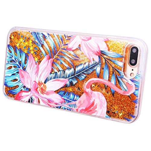 HB-Int Custodia per iPhone 7 Plus / iPhone 8 Plus Fenicotteri Disegno Gomma TPU Gel Silicone Case Flessibile Morbido Shell Custodia Ultra Sottile Caso Leggera Copertura Anti Graffi Resistente Protettiva Cover Sabbie Mobili Quicksand 3D Bling Paillettes