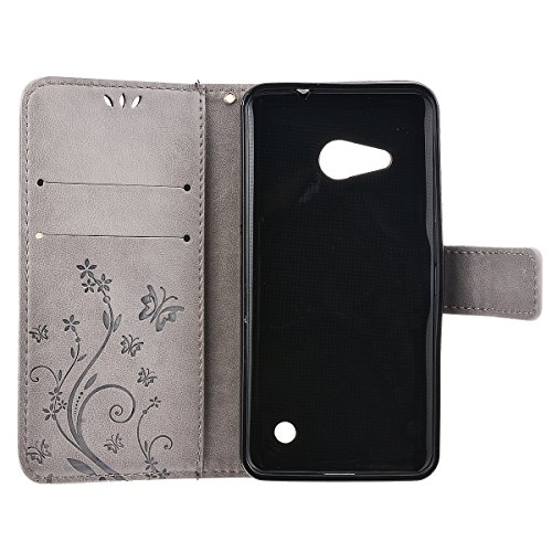 HB-Int - Custodia 4 in 1, in pelle PU, per Nokia Lumia 530, motivo: floreale, con stand, chiusura magnetica, antiurti + pellicola proteggischermo + tappo antipolvere + pennino, Suie, Microsoft Lumia 550