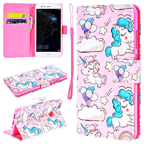 HB-Int 3D Painting Borsa in pelle Custodia per Huawei P10 Lite Retro Case Cover Protezione Flip Wallet Leather PU Caso Portafoglio Stand Case Cover Magnetico Chiusura Smartphone Protezione Posteriore Coperchio Card Holder - Pink Unicorn