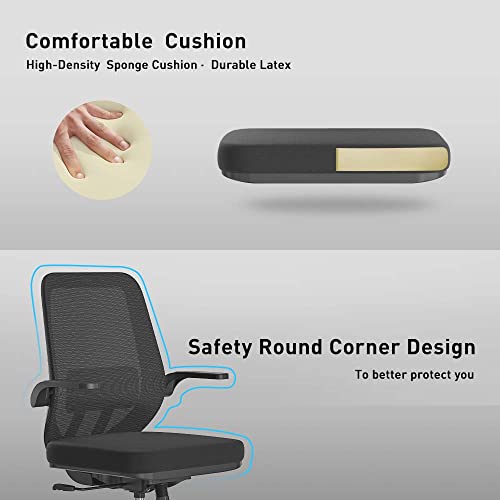 Hbada Sedia da Ufficio Ergonomica, Sedia da Lavoro con Braccioli Pieghevoli e Supporto Lombare Allargato, Sedia Girevole, Sedia da Computer in Rete, Sedia Piccola, Nero