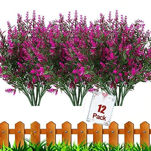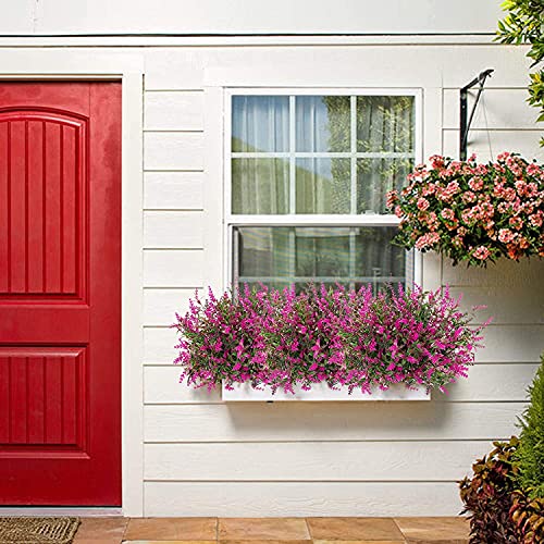 HBell - 12 mazzi di fiori artificiali per esterni, resistenti ai raggi UV, in finta plastica, per interni ed esterni, da appendere, per giardino, veranda, finestra, fattoria, decorazione (fucsia)