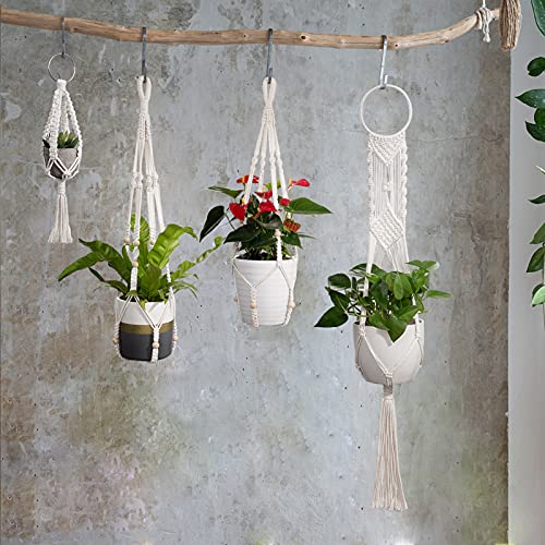 HBselect set da 2-4 Pcs Vasi Sospesi per Piante in cotone Robusto Corda per Vasi Sospesi in Tessitura a Mano Appendini per Piante Per Balcone e Giardino.