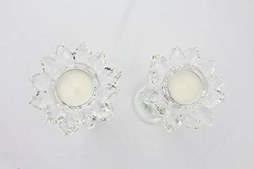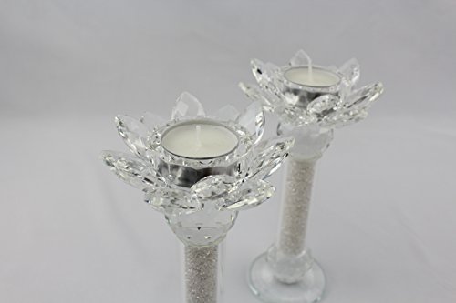 Hcaa portacandela con cristalli Swarovski a stelo ninfea fiore di loto top set di 2 lumini o candele da cena