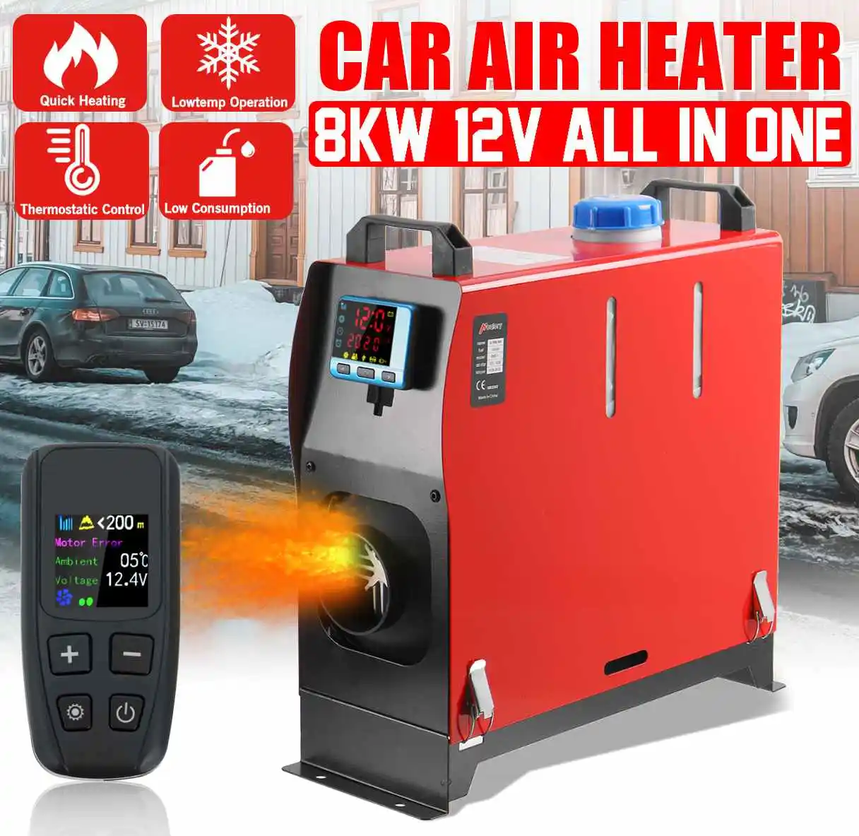 HCalory NEW All in One Car Heater Heating 12V 8000W Diesel Air Heater Single Hole LCD Monitor Parking Warmer For Car Truck Bus
