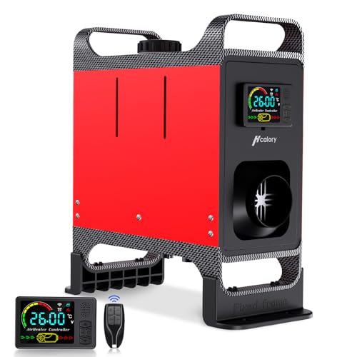 HCALORY Riscaldatore ad Aria Diesel 12V 24V 5-8kw, Riscaldatore per Veicoli Diesel, Riscaldatore Stazionario Diesel Portatile, con Monitor LCD e Telecomando per Camion, Autobus, Barca, Camper, Rosso