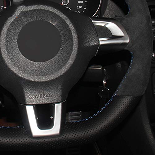 HCDSWSN Volante per Auto in Pelle Scamosciata Nera per Volkswagen Golf 6 GTI MK6 per VW Polo GTI Scirocco R Passat CC R-Line 2010