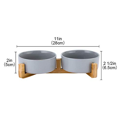 HCHLQLZ Grigio Ceramica Ciotole per Cani Gatti Ciotola Cane Gatto per Cibo Acqua -Combinato con Supporto in bambù-Confezione da 2 (400ml)