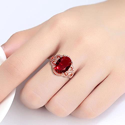 HCMA Anelli d'Argento Classici per Le Donne con Pietre preziose Rubino di Forma Ovale Regalo di Gioielli da Donna con Ciondolo Color Oro Rosa