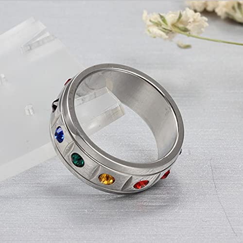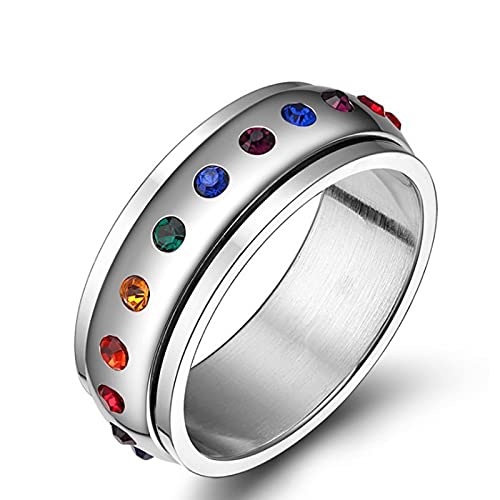 HCMA Anello Unisex in Acciaio al Titanio Anello Rotante Arcobaleno intarsiato con zirconi Colorati Anello Rotante in Acciaio Inossidabile Regalo Classico di Gioielli
