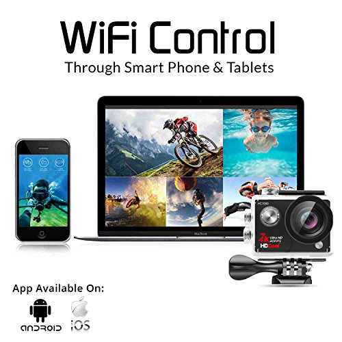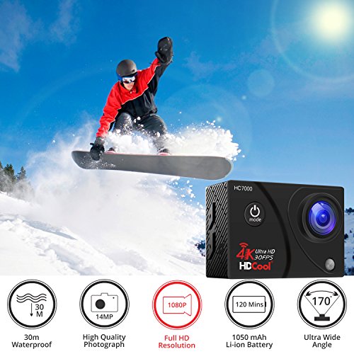 HDCool 4K Action Cam Full HD 16MP Wifi Action Camera 170 ° Super Grandangolo Sport Camera, Schermo LCD 2.0 Pollici for HC7000, 2 Batterie Incluse