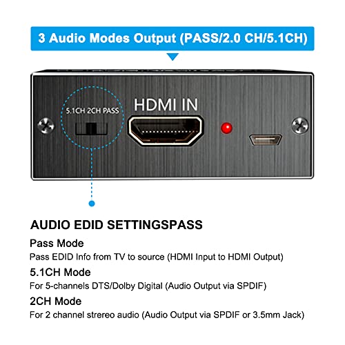 4K HDMI Audio Extractor,Ozvavzk Digitale Audio Estrattore HDMI a HDMI e Optical SPDIF con 3.5mm Stereo,Supporto Blu-ray DVD Xbox HD TV 3D 1080p