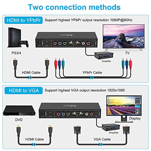 【Risoluzione 1080P@60Hz】HDMI con la massima risoluzione di input fino a 1080P @ 60Hz, la più alta risoluzione di uscita VGA fino a 1920x1080 e la massima risoluzione di uscita YPbPr fino a 1080P @ 60Hz.è possibile ottenere il godimento HD.Supporta larghezza di banda video a 2,25 Gbps / 225 MHz per canale (6,75 Gbps su tutti i canali).