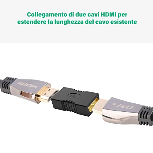 Accoppiatori HDMI femmina-femmina da 2 pacchetti, che collegano due cavi HDMI per estendere la lunghezza del cavo HDMI esistente per una sistemazione ottimale