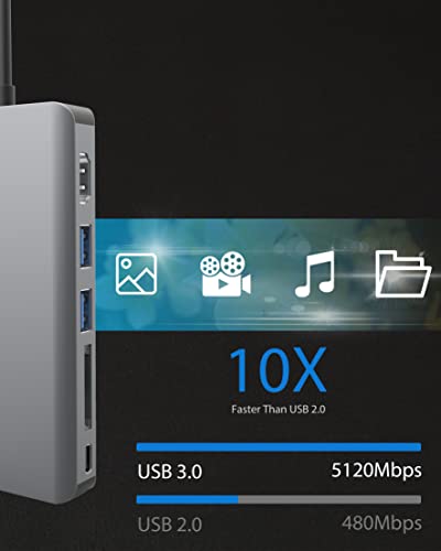 [Hub HDMI USB C]: utilizzo della porta HDMI e dello schermo per lo streaming 4K UHD@30Hz o tutti i HD 1080p@60Hz Il video viene inviato direttamente al televisore HD, allo schermo o al proiettore. Poiché è compatibile con la porta Thunderbolt-to-HDMI, si ottiene un effetto di sincronizzazione video vivido. Ideale per trasferire film HD completi su HDTV, espandere videogiochi su schermo o visualizzare ppt su un proiettore per riunioni in ufficio e intrattenimento.