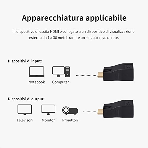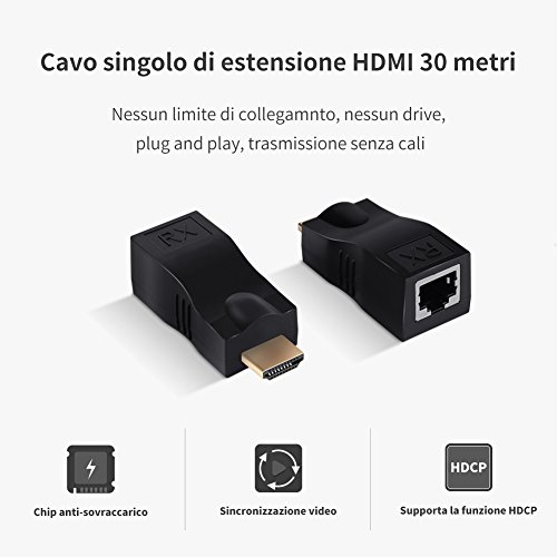 GHB 30M HDMI Extender HDMI Estensione Amplificatore RJ45 1080P Cat5a/6/7 Cavo Ethernet Trasmissione del Segnale - Nero
