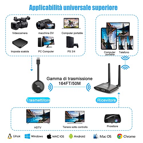 ✅【Trasmissione wireless 164FT/50M】La rete 5G può ricevere fino a 164FT/50M. Il hdmi senza fili funziona attraverso pareti o pavimenti, è così facile ottenere una trasmissione a lunga distanza senza interferenze. [Nota] Il lavoro attraverso pareti o pavimenti sarà ridotto a 32FT/10 metri. L'trasmettitore hdmi wireless è perfetto per l'uso quotidiano domestico, giochi, canali TV, riunioni di lavoro, riprese VLOG, educazione multimediale, monitoraggio in tempo reale, trasmissione in diretta.
