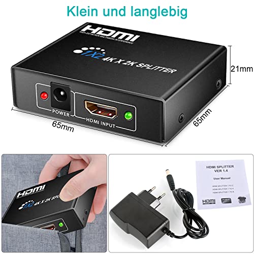 HDMI Splitter 4K, Splitter HDMI in alluminio 1 IN 2 OUT, Duplicatore HDMI Supporta 4K 3D e 1080P, per lettore Blu-Ray, HDTV, lettore di rete, PS3, PS4, XBox, STB digitale, ecc.