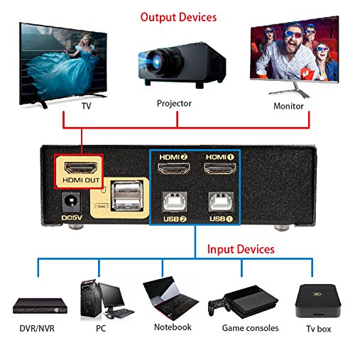 USB HDMI KVM Switch 2 Porte + Cavi Supporta Auto Scan 1080P 3D per Computer Server Notebook DVR NVR CKL-92H