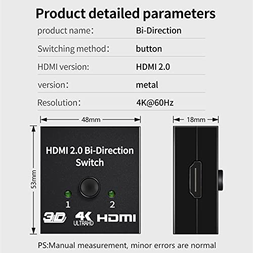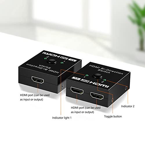 ☑【Ottimo bidirezionale switch hdmi 】questo resistente interruttore hdmi bidirezionale ti aiuta a collegare due sorgenti hdmi a un display hdmi (2x1), o a collegare una sorgente hdmi a due display (1x2) (due schermi non possono essere visualizzati contemporaneamente). luce led indica quale porta è attiva.
