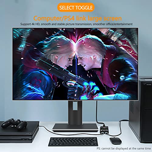 ☑【Interruttore a un pulsante】è possibile cambiare facilmente il dispositivo di input o l'uscita tv tramite il pulsante sull'interruttore hdmi. dopo che l'interruttore è andato a buon fine, l'indicatore corrispondente si accenderà. non è necessario utilizzare un fastidioso telecomando per cambiare, il controllo non è facile da trasportare e la batteria deve essere sostituita regolarmente