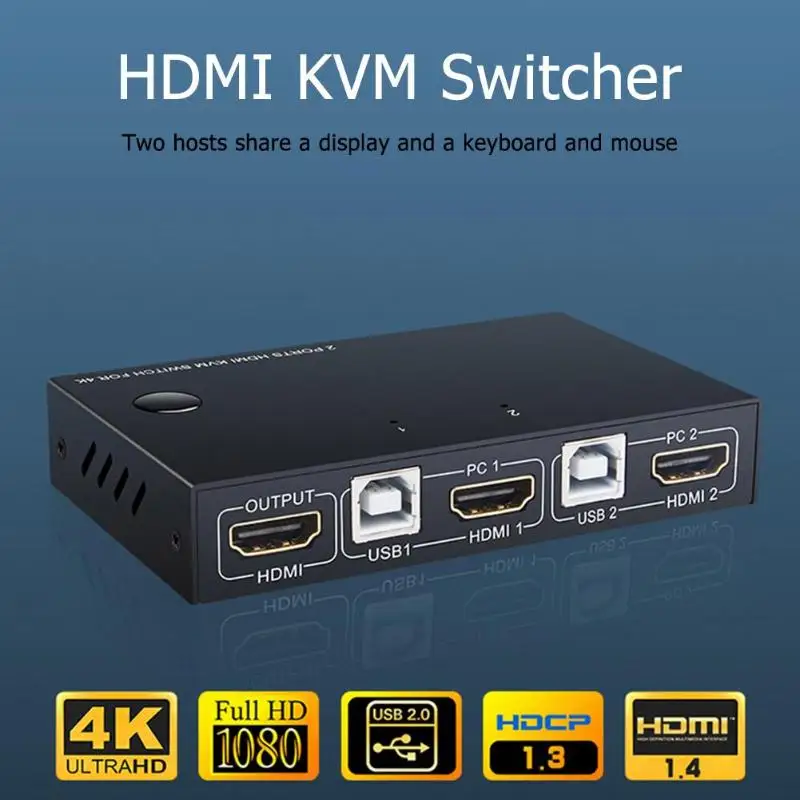 USB HDMI KVM Switch Box 4K Video Switcher Splitter for 2 PC Sharing Printer