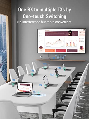 【Supporta fino a 8 trasmettitori a 1 ricevitore】 Per soddisfare le tue esigenze di più trasmettitori ma con 1 ricevitore, questa trasmissione wireless HDMI ha la funzione di un massimo di 8 trasmettitori che possono essere accoppiati a 1 ricevitore tramite la commutazione con un solo pulsante. (Il trasmettitore deve essere ben accoppiato con il ricevitore prima di cambiare). Si prega di notare che più ricevitori NON POSSONO essere collegati allo stesso trasmettitore.