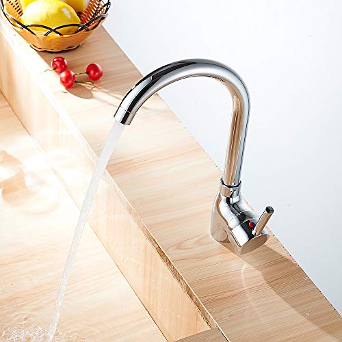 Heable Rubinetto da cucina, rubinetto girevole a 360 ° per lavello da cucina in ottone, rubinetto monocomando per lavello per lavello da cucina cromato